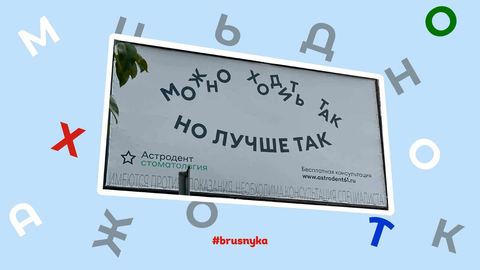 Интересно, но «раскусить» посыл рекламоносителя получилось только директору маркетингового агентства «Брусника», и то исключительно потому, что у нас в работе был кейс по созданию креативной рекламы брекетов.